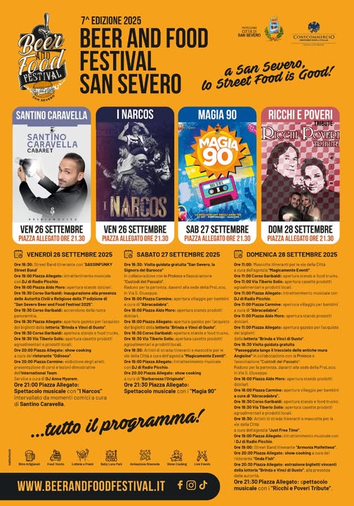 Eventi A SAN SEVERO “BEER AND FOOD FESTIVAL” By Redazione - 26 Settembre 2025 0 162 FacebookTwitterPinterestWhatsApp Si pubblica il programma dell’evento “Beer and food festival” giunto alla 7^ edizione che si realizzerà a San Severo nei giorni 26, 27 e 28 settembre