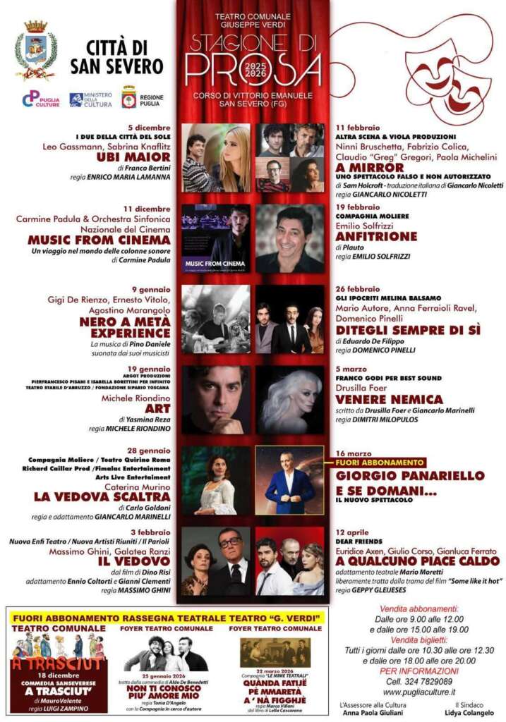 Nonostante le voci e i dubbi circolati tra i “malpensanti”, il sipario sulla tradizionale Stagione di Prosa del Teatro Verdi di San Severo è pronto ad alzarsi, presentando un cartellone che si annuncia tra i più ricchi e variegati degli ultimi anni.