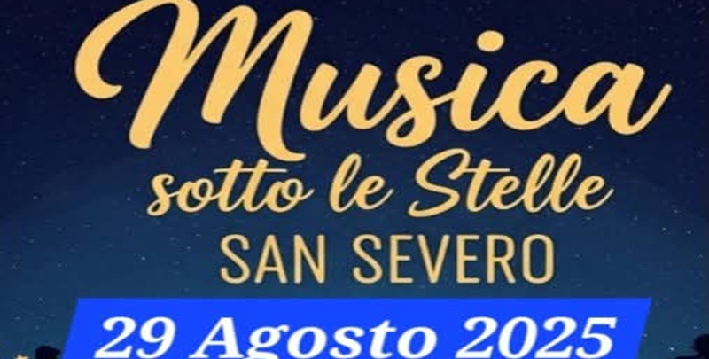 Eventi A SAN SEVERO “MUSICA SOTTO LE STELLE” By Redazione - 25 Agosto 2025 0 150 FacebookTwitterPinterestWhatsApp Grande evento musicale a San Severo il 29 agosto 2023 con lo spettacolo “Musica sotto le stelle”.