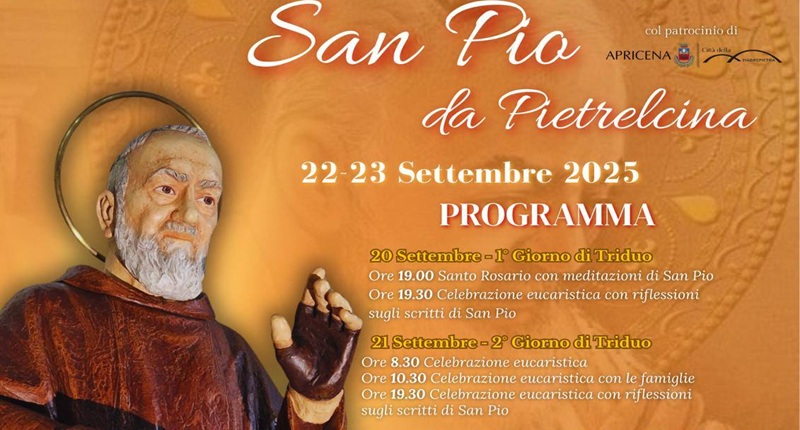 Dal 20 al 23 settembre, presso la parrocchia Sacra Famiglia, sono previsti o festeggiamenti in onore di San Pio da Pietralcina