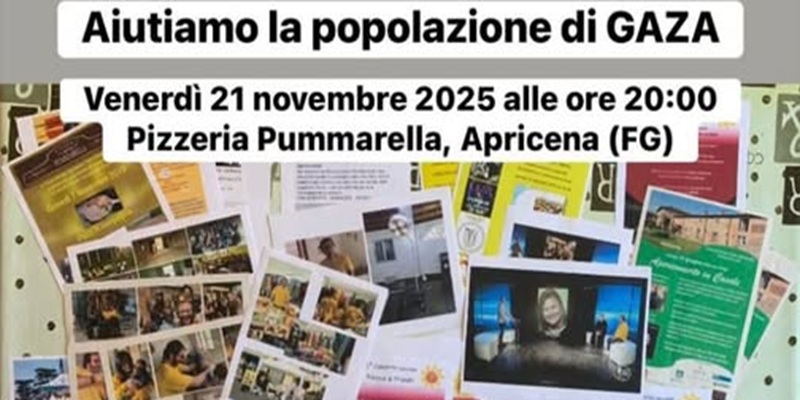 L’Associazione “Teresa & Friends”, da anni impegnata nel volontariato e nella promozione di iniziative solidali sul territorio, organizza un evento di beneficenza a sostegno della popolazione di Gaza, duramente colpita dalla crisi umanitaria in corso.