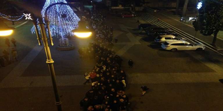 (NELLA FOTO LA LUNGA FILA DI GENTE IN VISITA AL PRESEPE)