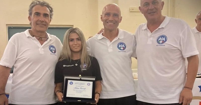Un giusto premio, un giusto riconoscimento da parte della sezione AIA di Foggia per la giovanissima arbitra sannicandrese Melissa Carrafa che ha già debuttato in categoria con una personalità imponente.