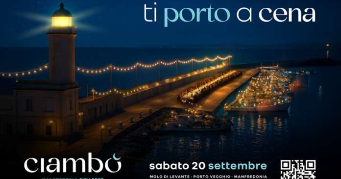 Il 20 settembre il Molo di Levante di Manfredonia si trasformerà in un grande ristorante sotto le stelle con “Ciambò – la cena sotto le stelle”, un evento straordinario che unisce tradizione culinaria, convivialità e spettacolo, regalando a cittadini e visitatori un’esperienza unica.
