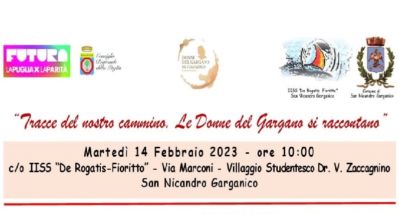Il progetto “Tracce del nostro cammino. Le Donne del Gargano si raccontano. Incontri aperti nella città Gargano”, a cura dell’associazione Donne del Gargano in cammino, realizzato con il sostegno del Consiglio regionale della Puglia nell’ambito dell’Avviso pubblico “Futura. La Puglia per la parità” entra nella fase attuativa dell’idea progettuale finalizzata alla riduzione del gender gap, alla decostruzione degli stereotipi di genere, ad innescare nelle comunità processi di riflessione, di contrasto alla discriminazione, all’iniquità sociale e all’esclusione.