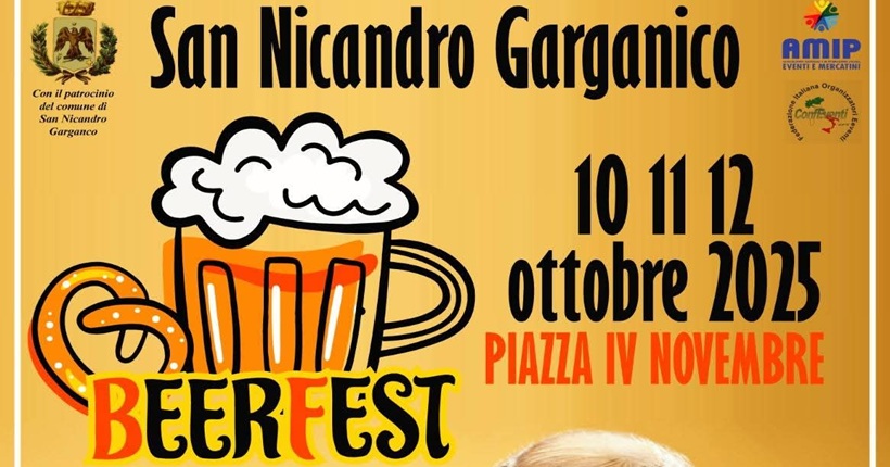 EventiSan Nicandro Garganico SAN NICANDRO GARGANICO, SECONDO APPUNTAMENTO DEL “BEER FEST” By Redazione - 11 Ottobre 2025 0 314 FacebookTwitterPinterestWhatsApp Imperdibile evento oggi a San Nicandro Garganico in Piazza 4 Novembre: “Beer Fest” che continuerà anche domani, sabato 12 ottobre. Birra a volontà, degustazione prodotti tipici e tanta musica.