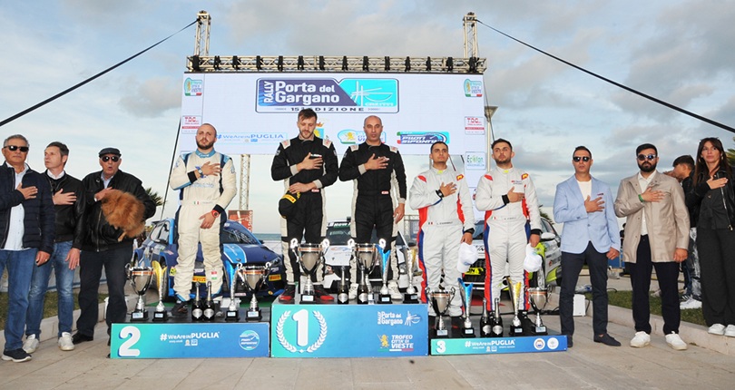 Vieste, 12 ottobre 2025. Non poteva essere più ricco di emozioni, il 15° Rally Porta del Gargano – 5° Trofeo Città di Vieste, che si è concluso oggi nel piazzale di Marina Piccola, “perla” della città garganica. La gara allestita quest’anno dalla ASD Piloti Sipontini è destinata a essere ricordata a lungo, nella storia di questa manifestazione, grazie all’inarrestabile rimonta messa in atto da Giuseppe Bergantino e Mirko Di Vincenzo, che hanno ottenuto una vittoria insperata dopo aver spremuto quanto più possibile la loro Skoda Fabia R5 di Classe Rally2. La gara di Vieste ha così concluo nel migliore dei modi la Coppa Rally Aci Sport di Zona 8 (comprensiva delle regioni Abruzzo, Molise, Lazio, Campania, Puglia, Basilicata e Calabria, essendo la tappa finale del calendario 2025.